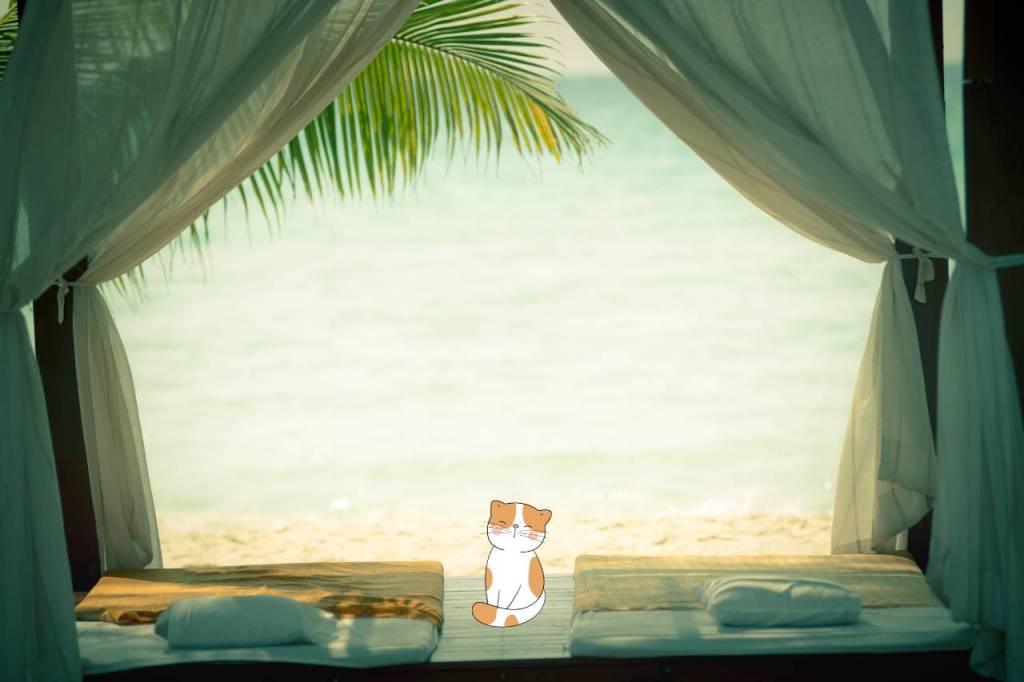 Teawater is away on sabbatical! I picture him binge-watching Simon’s Cat and Pink Panther cartoons, listening to his favorite classical cello music, indulging in his favorite tuna cat treats, and soaking up the sun with his toes in the sand!