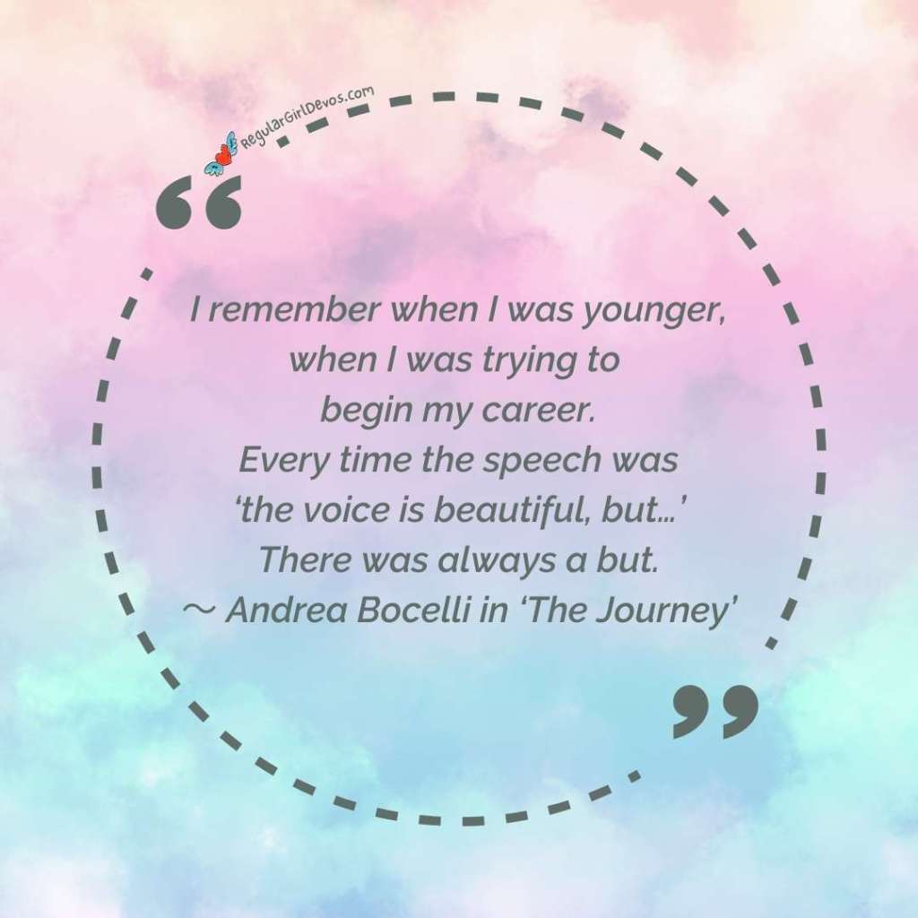 I especially like the first one by Andrea Bocelli. I got to see him in concert several years ago and it was amazing. It is hard to describe, but not just my ears were listening. My whole body resonated with the fullness of his voice. Even if his music may not be your thing, I would highly recommend the experience. Check out the link below and crank up the volume!