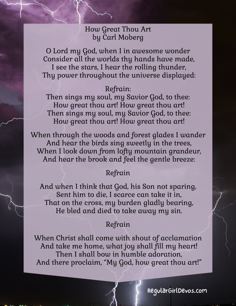 Today our beautiful words are from the hymn How Great Thou Art. If you missed my post, Get Joy by Kicking But, you can catch up here.